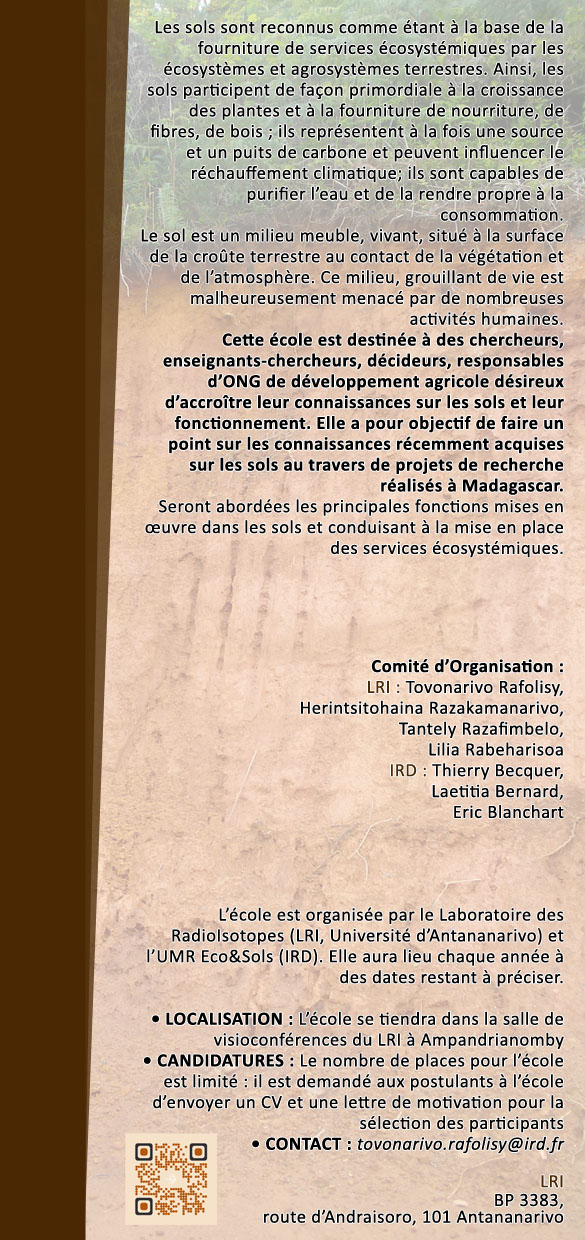 Base de Données de FSP PARRUR > Les activités > IST > Séminaires-Ecoles > Ecole thématique > ECOLE THEMATIQUE SOL_LRI-IRD > POCHETTE- LIVRET-FLYERS > FLYERS